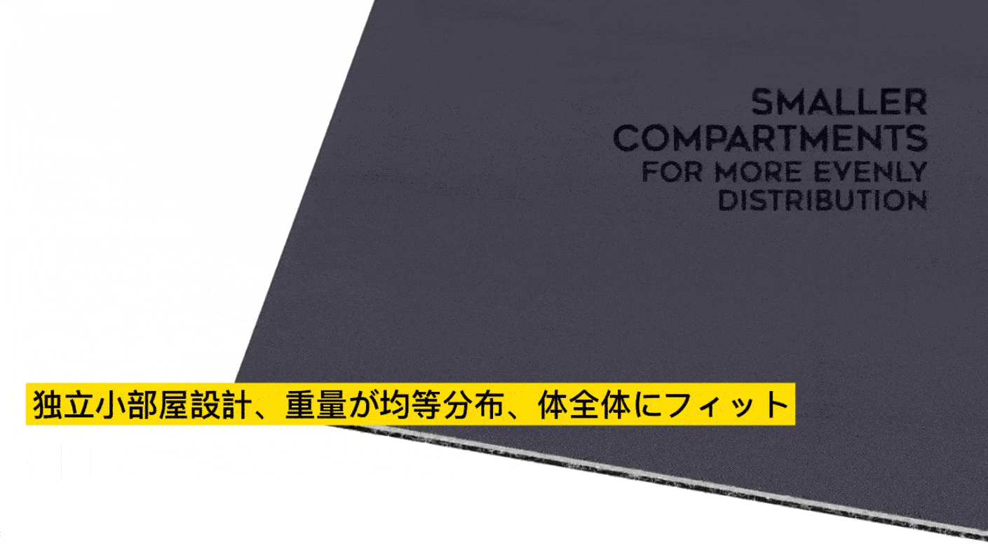 従来の加重ブランケットよりも、体の細かな形にあわせて適度に沈みこみ、しっかりと包み込まれている感覚が特徴です。