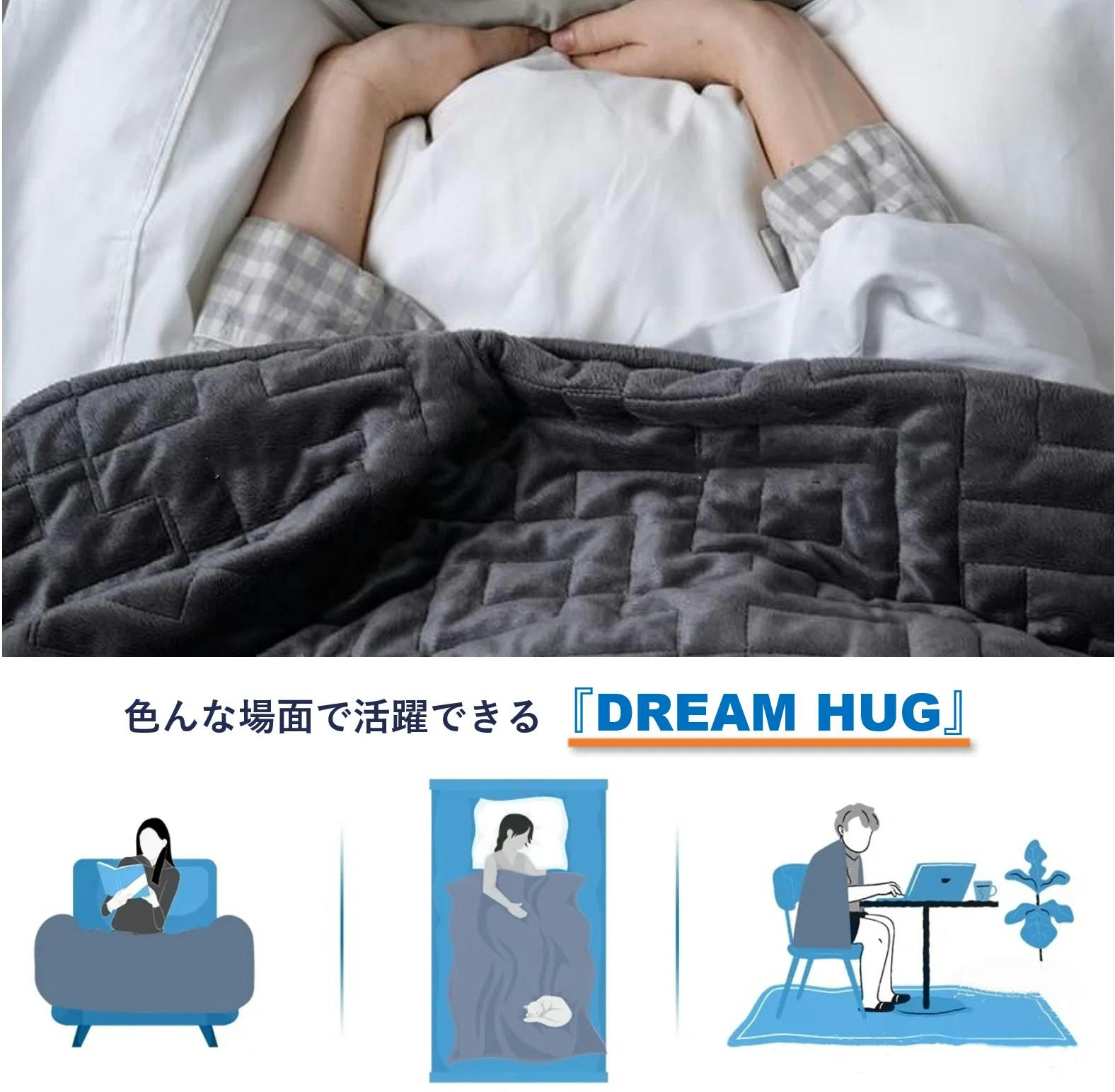 など、様々な場面で『DREAM HUG』加重ブランケットは活躍できます。