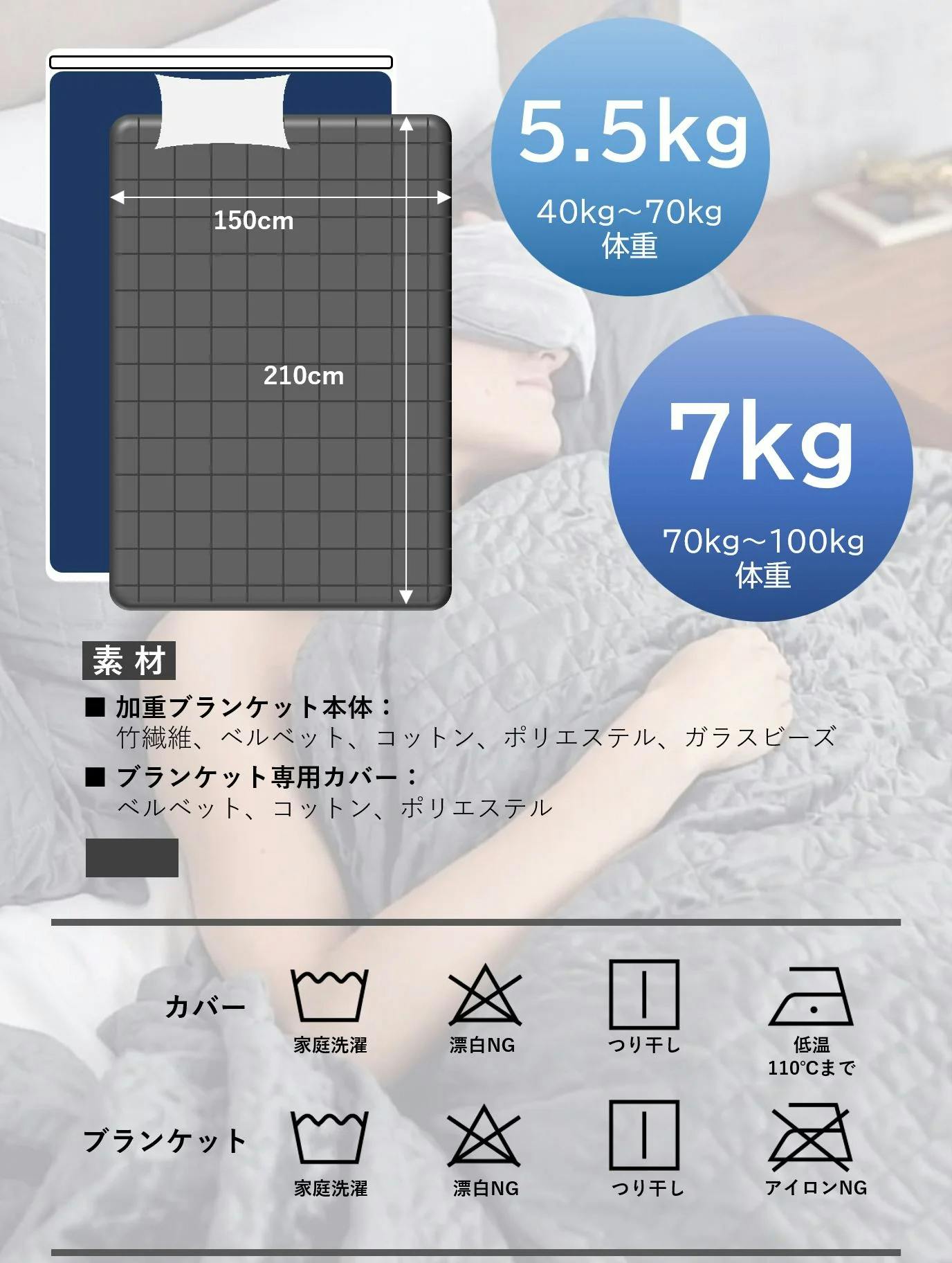 5種の素材を用いて、特殊な7層構造で通気性に優れたブランケットが実現します。