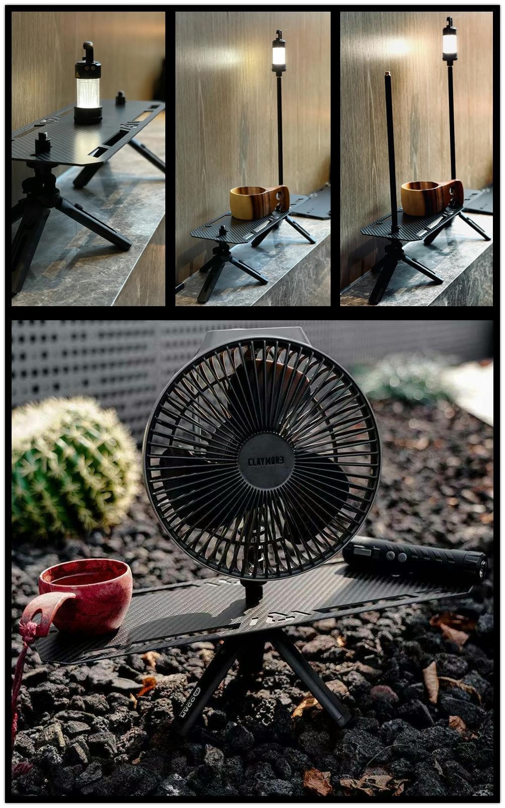 ランタンスタンドを利用することで、なんとカッコイイラック付きの多機能テーブルに変身可能!!